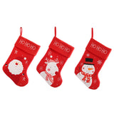 This festive red felt Christmas stocking combines traditional holiday charm with practical functionality, featuring delightful embroidered motifs of Santa, snowman, and reindeer designs. The fold-over cuff showcases cheerful "HO HO HO" script embroidery, whilst the luxurious sateen lining adds an elegant touch to this seasonal essential. Crafted from soft, plush fleece with reinforced stitching, this stocking offers durability alongside comfort. The wide opening easily accommodates treats, small gifts, and holiday trinkets, making it perfect for creating magical Christmas morning memories. A sturdy hanging loop ensures secure display on mantels, banisters, or doors throughout the festive season.