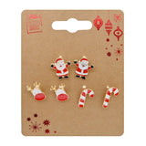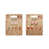 Metal Christmas Earrings | 3 Pairs Assorted Designs Santa Reindeer Candy Cane