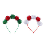 Tinsel Pom Pom Headband | Assorted Colours, Sateen Ribbon Band, 5 Poms