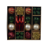 Bring classic colour and texture to your tree with this Christmas Assorted Tree Baubles and Icicles Set, curated in a traditional palette of red, gold, green and pearl. Each 8cm ornament is designed to create a cohesive, high–impact display: a mix of classic baubles, ribbed glitter balls, textured spheres and ornate snowflake motifs delivers variety without clashing. Finishes span high–shine metallic, glitter accents and soft matt pearl, adding contrast that catches light from every angle. Elongated icicle–style decorations introduce vertical lines that visually lengthen the tree and balance fuller branches. Integrated gold caps and pre–fitted loops make hanging fast and secure, so styling takes minutes rather than hours. Thoughtful, compartmented packing helps protect each piece between seasons and keeps sets organised year after year. For homes that value a timeless look with minimal effort, this set offers coordinated colour, balanced shapes and satisfying depth – ready to refresh your festive décor with dependable style.