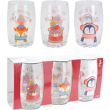 Christmas Festive Animal Tumbler Glasses | 300 ml, Set of 3, Seasonal Phrases