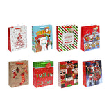 Christmas Gift Bag Large Mega Mix | 8 Assorted Designs, Red Ribbon Handle