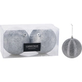 Christmas Glitter Ridged Bauble Set | 10cm, Silver, 2 Pieces