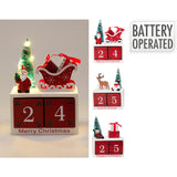 Make every December day count with this Christmas LED Tabletop Advent Calendar. Combining battery–operated LED lights with classic countdown cubes, it brings a warm, twinkling glow to mantels, shelves and desks while you update the date in seconds. Each piece features hand–painted, vintage–inspired detailing and decorative motifs – Santa, sleigh, reindeer, snowman and gift designs – paired with printed seasonal greetings such as Merry Christmas, Let It Snow and Happy Holidays. Interchangeable numbered cubes provide simple date customisation without mess, and the compact footprint suits small spaces and shared areas. Available in assorted designs and colours for coordinated festive styling, it offers a charming focal point by day and a cosy ambience by evening. No trailing cables thanks to discreet, battery–powered LEDs, so placement is effortless across the home, classroom or reception. A practical, reusable alternative to disposable calendars, it’s built to be enjoyed year after year.